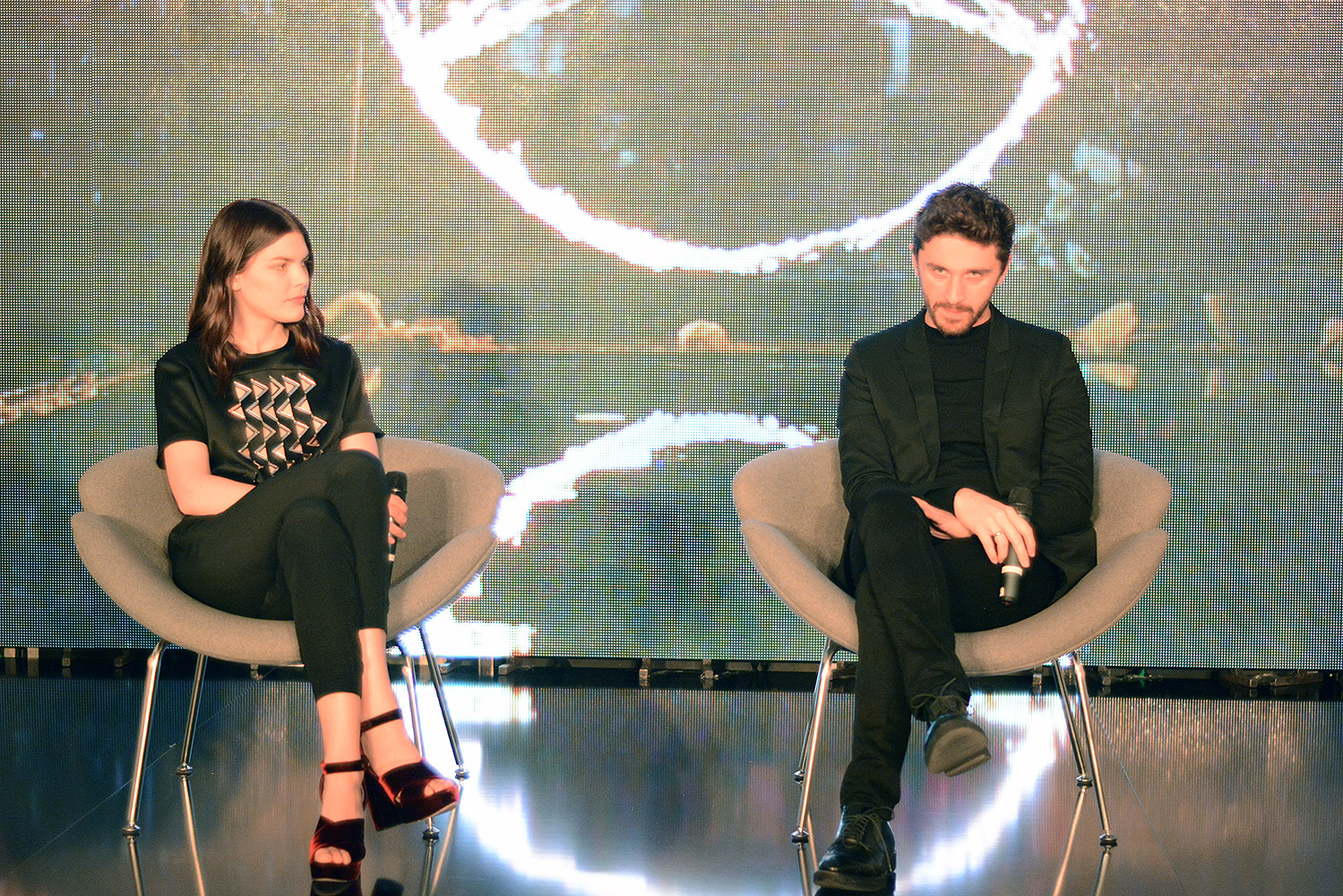 Разбудить представителей грузинской богемы в девять утра организаторы «Mercedes-Benz Fashion week Tbilisi» даже не пытались. Поэтому на модную дискуссию с Дэвидом Кома позвали только журналистов, блоггеров и байеров. Но и тут подстраховались. Время начала мероприятия в официальной программе указали 9:30. На полчаса раньше реального, чтобы не очень пунктуальным дать возможность опоздать. Дэвид Кома с двумя спутниками, героинями ролика «Burning Desire», пришел вовремя. На фэшн-дискуссию чуть ли не с трапа самолета явился традиционно — в черном костюме и с широкой улыбкой.