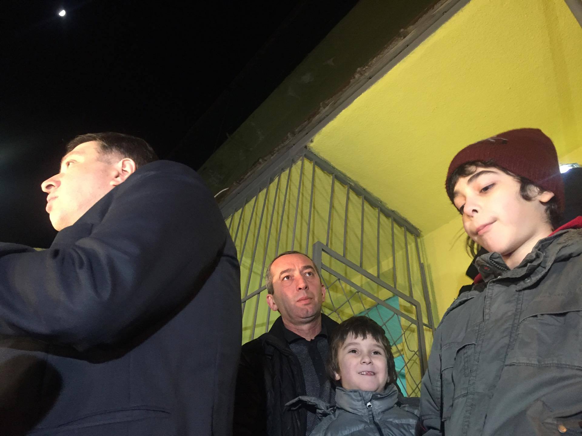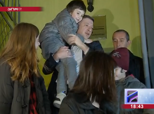 У выхода из тюрьмы Угулава, встретили члены семьи, близкие, однопартийцы и представители СМИ. Бывшего мэра встречали овациями, присутствующие соратники скандировали его имя. Дети терпелив ждали когда папа произнесет речь и они смогут наконец забрать Гиги домой.
