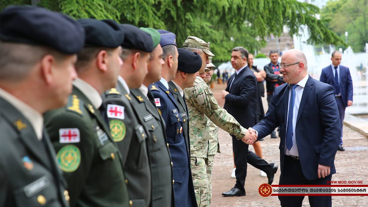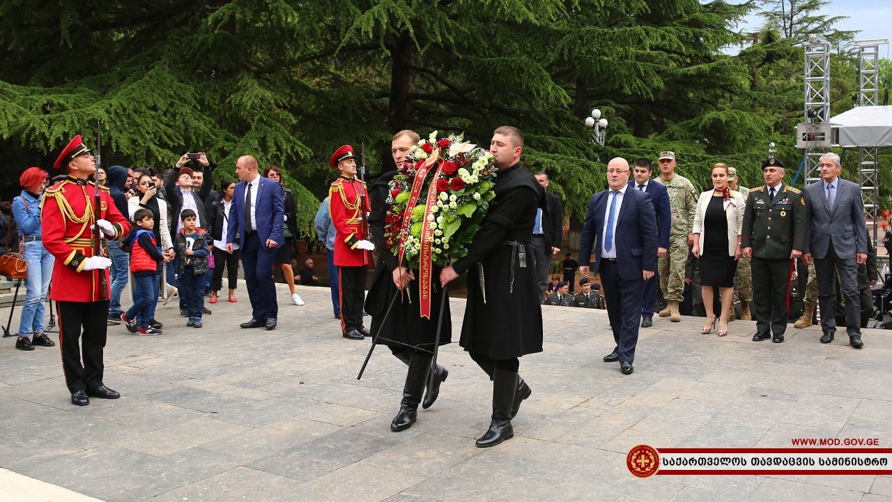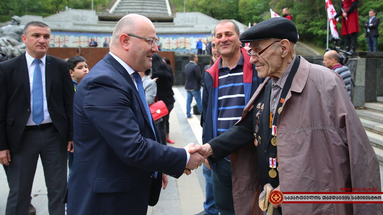 От министерства обороны Грузии ветеранов поздравил глава военного ведомства Леван Изория. В сопровождении представителей Минобороны Грузии, он прибыл в парк Ваке и возложил венок к Могиле неизвестного солдата.