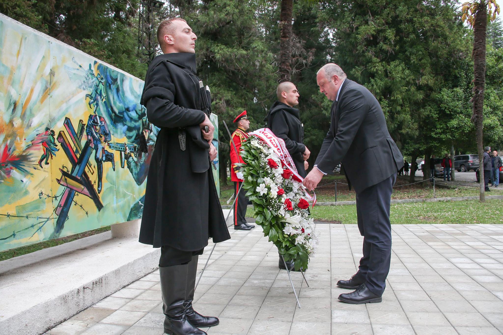 В Зугдиди, грузинский президент, также возложил венок к мемориалу павших в войне с фашизмом. Почтив память героев, отдавших жизнь за победу.