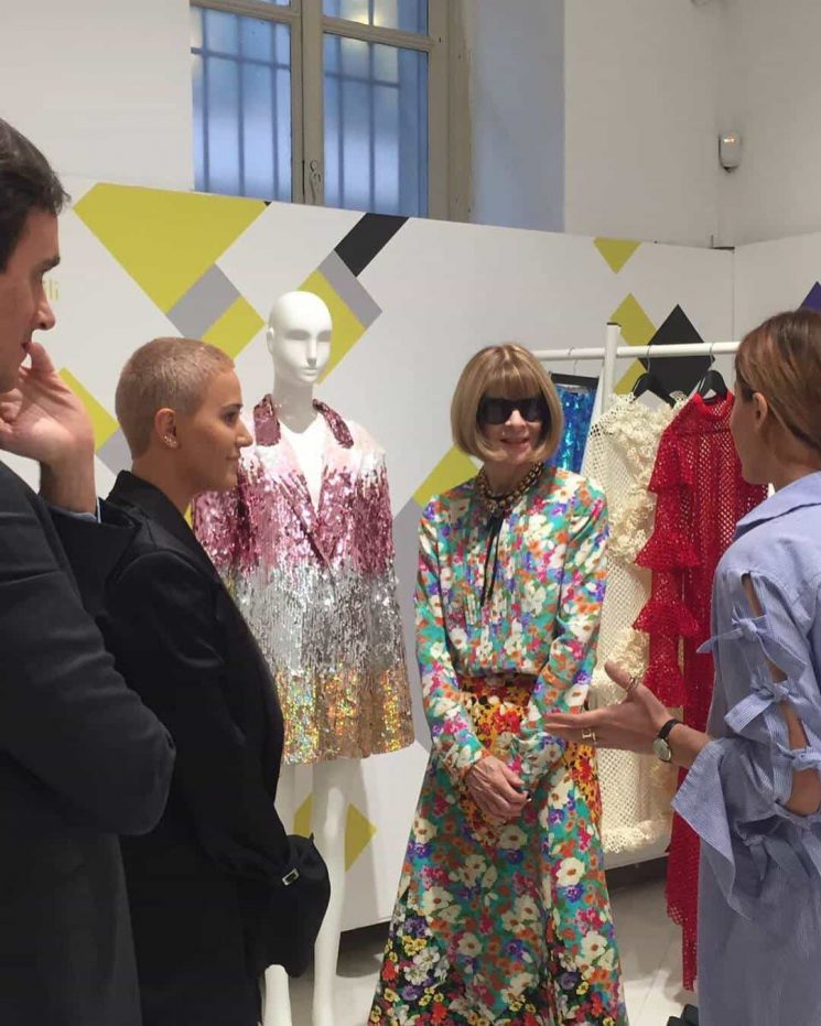 Винтур лично ознакомилась с коллекциями дизайнеров, представленных в шоу-руме Palazzo Morando Costume Moda Immagine.