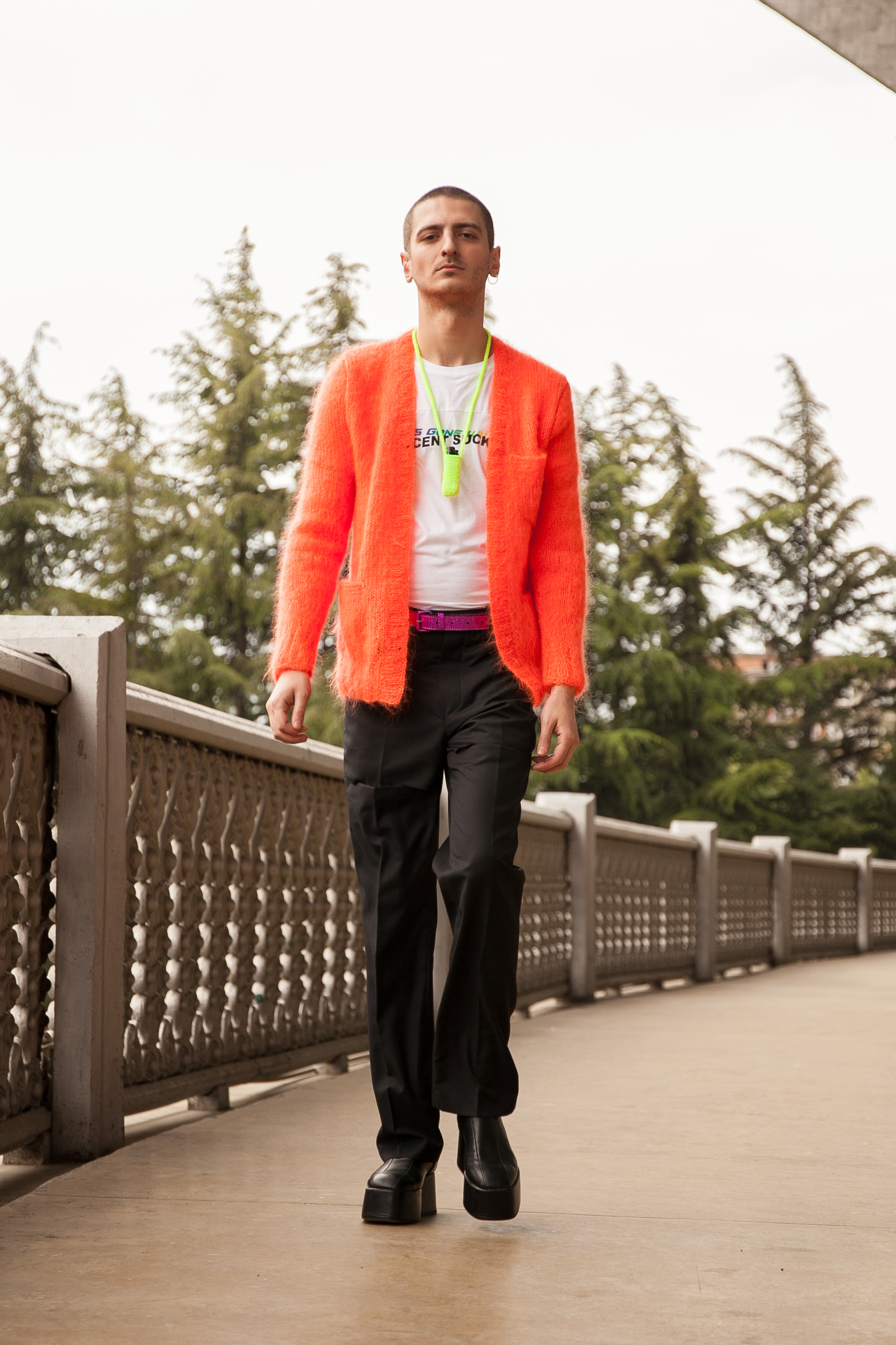 Дух мятежной постиндустриальной столицы продемонстрировали через сумасшедший показ бренда SITUATIONIST в нескольких метрах над уровнем тбилисского моря. Модели в одежде Ираклия Русадзе шагали сквозь колонны монумента «История Грузии». Это было настолько впечатляюще, что гостей не спугнул даже небольшой дождь.
