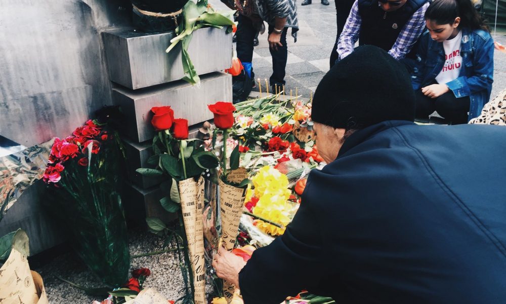 У мемориала 9 апреля граждане возлагают цветы и вспоминают погибших